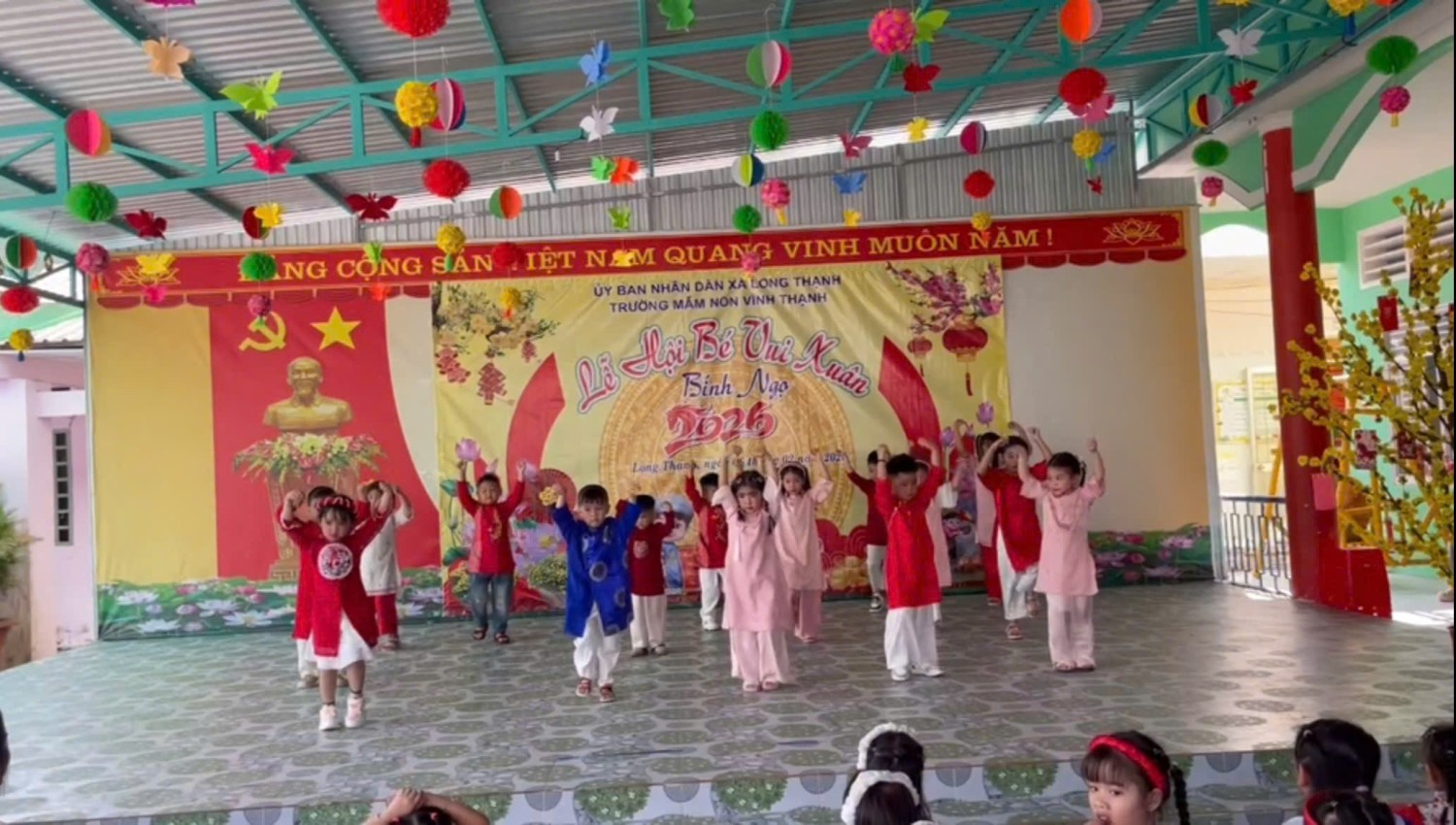 Hòa chung không khí rộn ràng chào đón Tết cổ truyền của dân tộc, Trường Mầm non Vĩnh Thạnh đã tổ chức buổi hoạt động với chủ đề “Lễ Hội Bé Vui Xuân”, tạo sân chơi vui tươi, ý nghĩa cho các bé. Trong chương trình, trẻ được tham gia biểu diễn và thi các tiết mục văn nghệ mừng xuân với nhiều nội dung phong phú, sinh động. Mỗi tiết mục là sự thể hiện nét hồn nhiên, tự tin của trẻ, đồng thời phản ánh sự tâm huyết, sáng tạo của đội ngũ giáo viên trong việc tổ chức các hoạt động giáo dục lấy trẻ làm trung tâm.