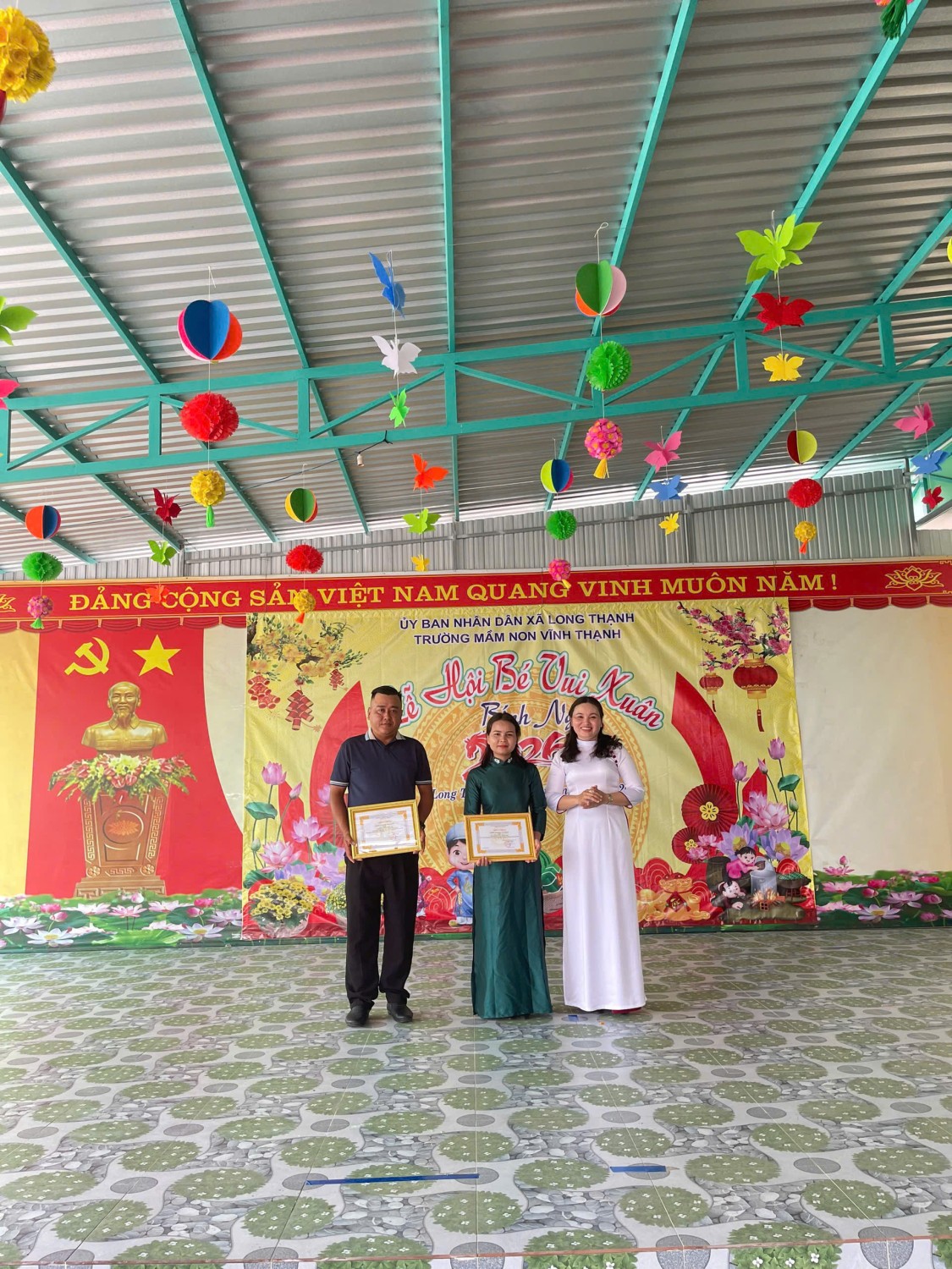 Hình ảnh Hiệu trưởng Dương Ngọc Châu cùng mạnh thường quân trao quà cho các bé hoàn cảnh khó khănHình ảnh Trưởng ban đại diện Phụ huynh cùng mạnh thường quân trao quà cho các bé hoàn cảnh khó khănHình ảnh Hiệu Phó Ngô Kim Hân cùng phó trưởng ban Phụ huynh trao quà cho các bé hoàn cảnh khó khănHình ảnh Hiệu trưởng Dương Ngọc Châu gửi giấy tri ân đến mạnh thường quân Hình ảnh tập thể trường cùng khách mời