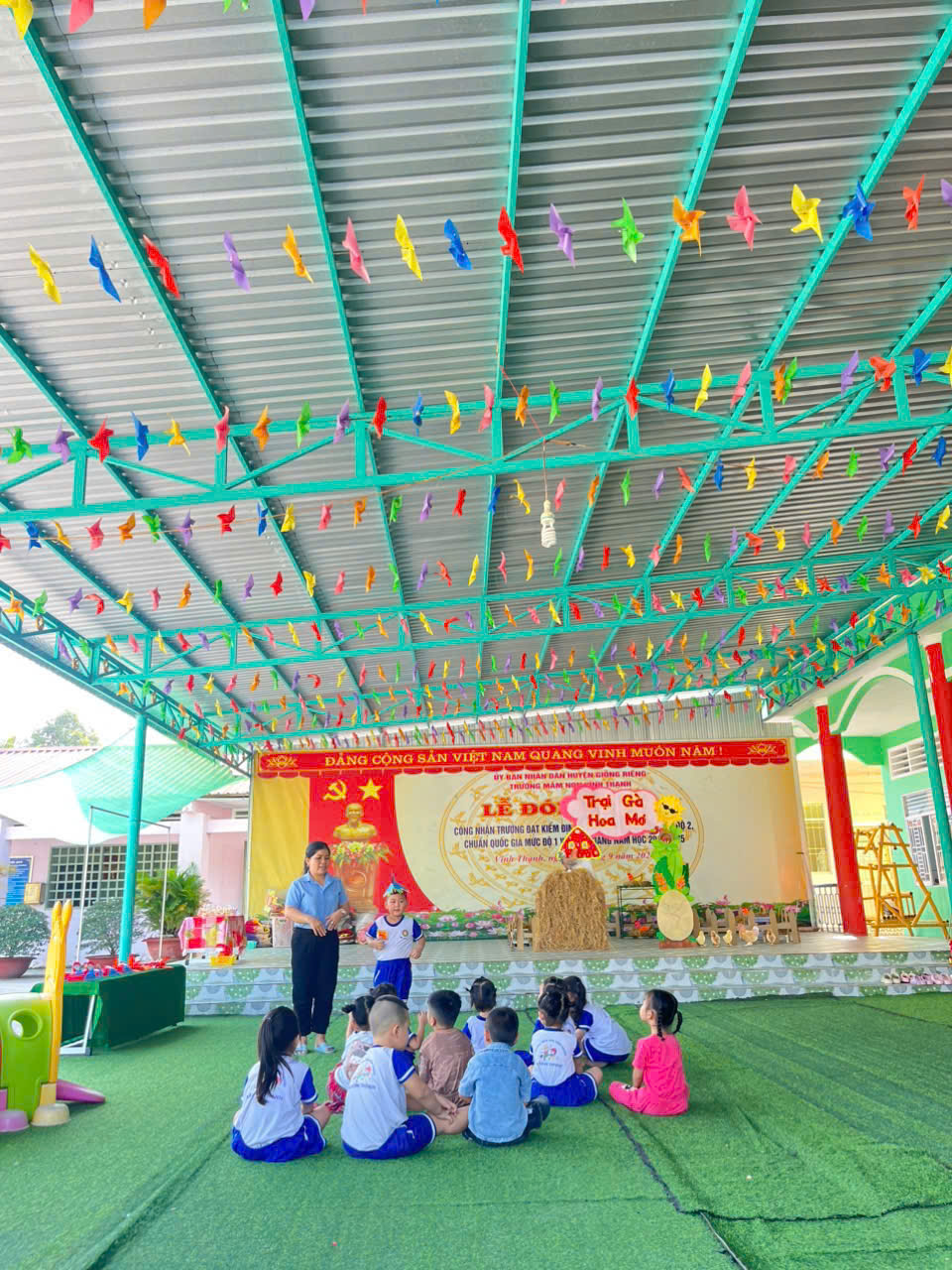 Trong năm học 2025 - 2026, công tác sinh hoạt chuyên môn tiếp tục được nhà trường xác định là nhiệm vụ trọng tâm, đóng vai trò then chốt trong việc nâng cao chất lượng chăm sóc, giáo dục trẻ và phát triển năng lực nghề nghiệp cho đội ngũ giáo viên. Trên tinh thần luôn hướng tới phương pháp giáo dục mầm non, lấy trẻ làm trung tâm và tăng cường tính thực tiễn trong tổ chức hoạt động. Ngày 24 tháng 01 năm 2026, tại trường Mầm non Vĩnh Thạnh đã diễn ra 2 tiết thao giảng Tiết 1: Hoạt động học Dạy hát lớp Mầm do Cô giáo Thị Mỹ Phương thực hiện tập trung vào việc phát triển thẩm mỹ, khả năng cảm thụ âm nhạc, ngôn ngữ và sự tự tin của trẻ thông qua hình thức tổ chức linh hoạt, phù hợp đặc điểm lứa tuổi.Tiết 2: Hoạt động ngoài trời lớp Chồi 1 do Cô giáo Lâm Tú Nguyên thực hiện, tạo cơ hội cho trẻ được vận động, quan sát, trải nghiệm thực tế, phát triển thể chất, kỹ năng xã hội và khả năng khám phá môi trường xung quanh.Buổi thao giảng vinh dự đón tiếp cô Hiệu trưởng Dương Ngọc Châu, cô Phó Hiệu trưởng chuyên môn Nguyễn Thị Bích Ngọc, cô Phó Hiệu trưởng bán trú Ngô Kim Hân cùng toàn thể giáo viên trong nhà trường đến dự, theo dõi và góp ý chuyên môn. Tiết dạy được chuẩn bị kỹ lưỡng với đồ dùng - đồ chơi phong phú, đa dạng.Thông qua hoạt động sinh hoạt chuyên môn này, giáo viên trong khối có điều kiện trao đổi, chia sẻ kinh nghiệm, phân tích ưu điểm - hạn chế trong phương pháp tổ chức, từ đó rút ra những bài học thiết thực nhằm nâng cao chất lượng giảng dạy, đáp ứng yêu cầu đổi mới giáo dục mầm non trong giai đoạn hiện nay.
